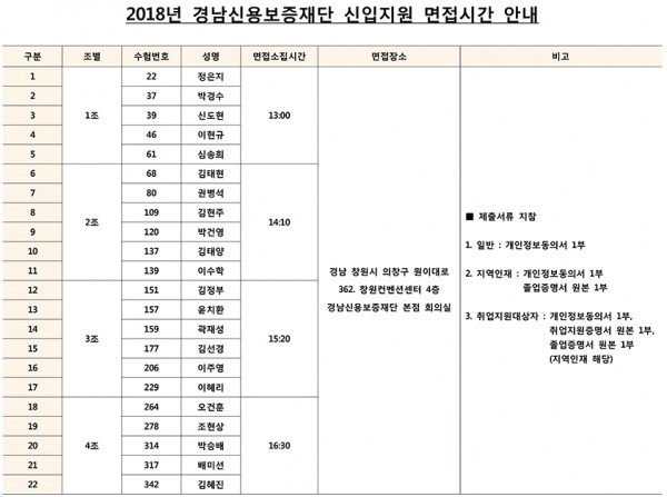| 2018년 경남신용보증재단 신입지원 면접시간 안내 | ||