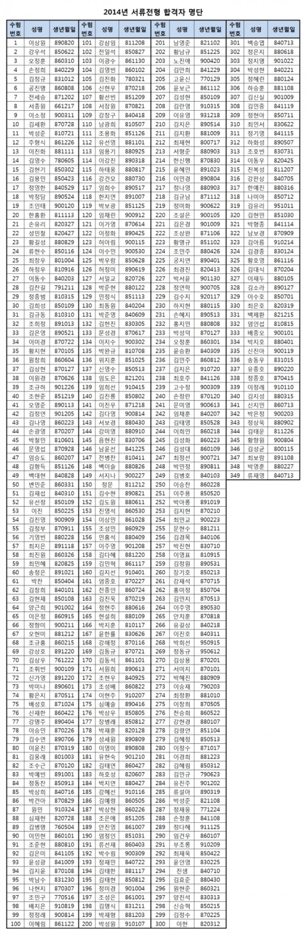 - 2014년도 서류전형 합격자 명단.xlsx (21.9K) 117회 다운로드 | DATE : 2018-08-13 17:16:27