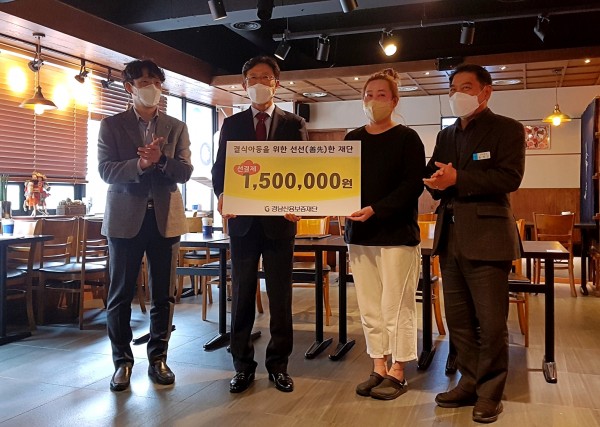 □ 우리 재단은 ‘오구일식당(창원시 상남동)’, ‘샐러든(진주시 칠암동)’,‘명동돈까스(김해시 관동동)’ 세 곳의 선한영향력가게에 사업비와 직원들의 자발적인 성금모금으로 모은 350만원을 선결제를 하고, 이를 통해 500개의 식사권을 발행하여 결식아동이 균형 잡힌 식사를 할 수 있도록 지원하는 선선(善先)한 재단 기탁식을 가졌다.