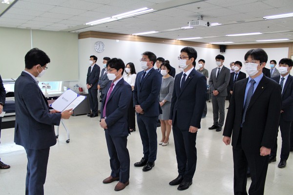 □ 재단 24주년 창립 기념식을 코로나19 예방을 위해 업무유공 및 장기근속 포상, 창립 기념사 등으로 간소하게 진행했다.