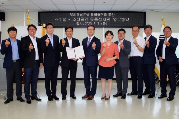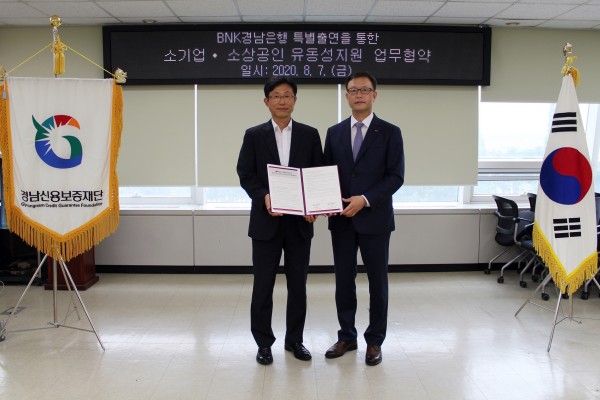 □ 우리 재단은 BNK경남은행과 경남지역 소상공인 등 유동성 지원을 위한 업무 협약을 체결했다.