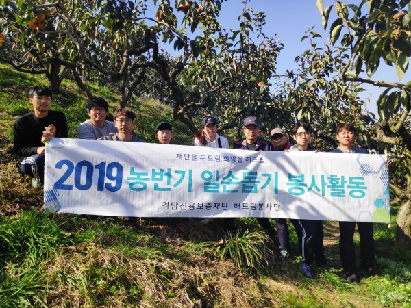 □ 재단직원 10명이 김해시 진영읍 소재 단감농가를 찾아 추계 농번기 일손돕기 봉사활동을 하였다.
