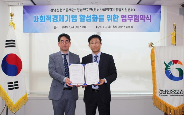 □ 경남연구원(사회적경제통합지원센터)과 사회적경제기업 활성화를 위한 협약식을 개최하였다.