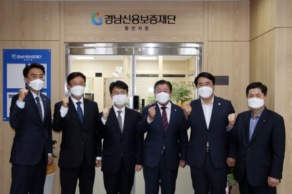 □ 2021년 4월 19일부로 함안지점이 업무를 개시하여 기존에 마산지점을 이용해야 했던 함안,의령 지역 소상공인들의 불편을 해소하게 되었다. (사진은 4월 29일 지점 개점을 축하하기 위해 방문한 내빈들)