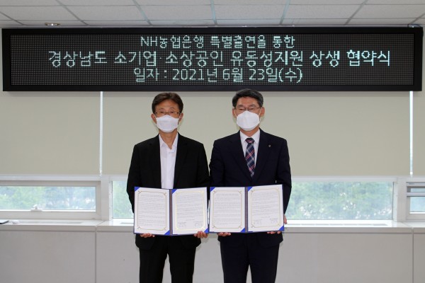 □ 우리 재단과 NH농협은행 경남영업본부가 코로나19 장기화로 어려움을 겪고 있는 도내 소기업·소상공인 지원을 위해 33억 8,600만원 출연을 통한 ‘경상남도 소기업·소상공인 유동성지원 상생협약’을 체결하였다.