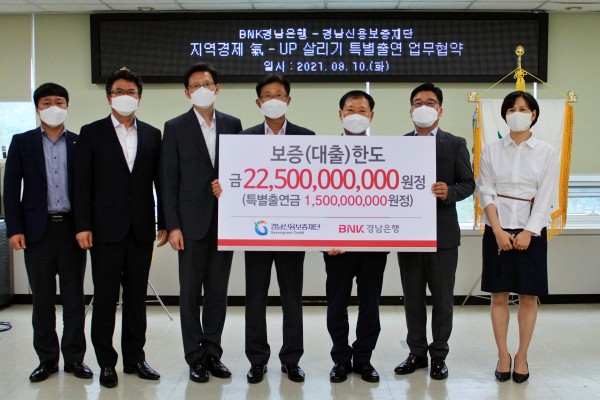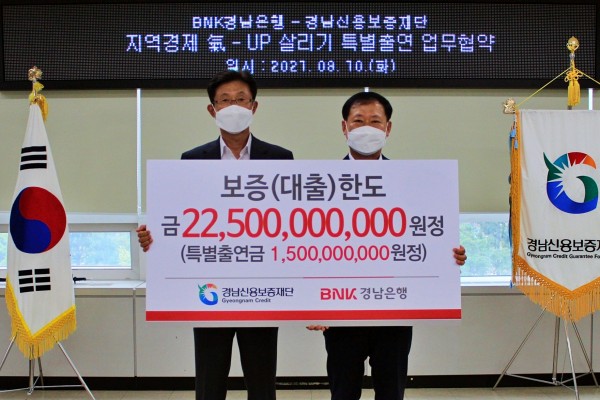 □ BNK경남은행이 우리 재단에 15억원을 특별 출연하고 코로나19로 어려움을 겪고 있는 지역 소기업과 소상공인에 ‘특별보증 225억원’을 지원하는 ‘지역경제 氣-Up(기업) 살리기 금융지원 업무 협약’을 체결했다.