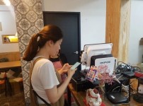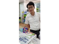 2019년 6월 17일 GS명서제일점에서 무더위에 고생하는 직원들을 위해 제로페이를 이용하여 아이스크림을 계산하는 모습입니다