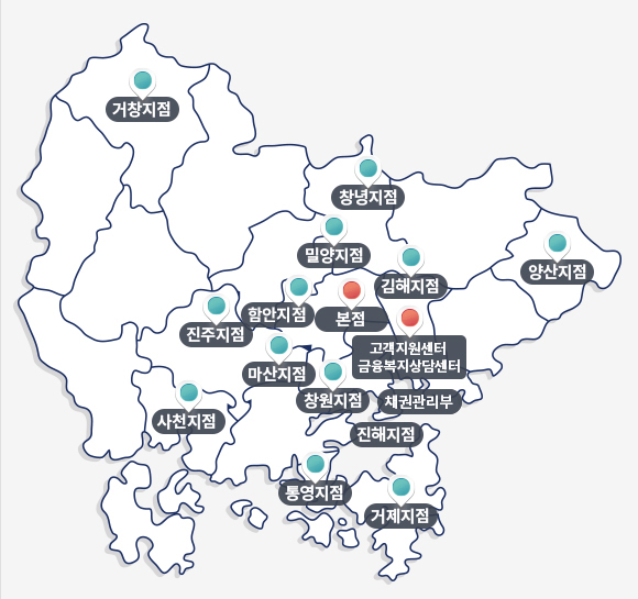 | 진주지점 | 경남 진주시 진주대로 1042, 2층 (BNK 경남은행 진주중앙지점 2층) |